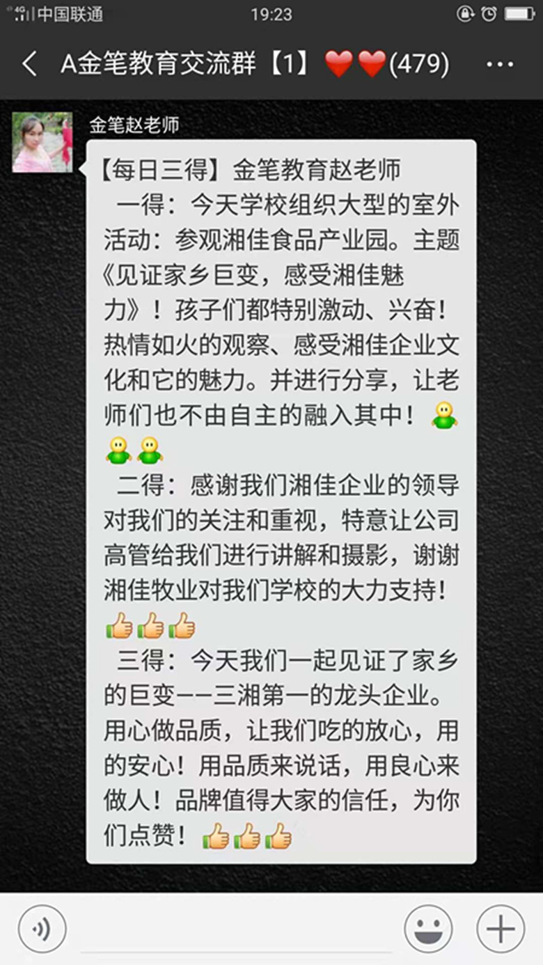 這次參觀企業(yè)的活動,加深了學生們對家鄉(xiāng)本土企業(yè)湘佳牧業(yè)的了解,開闊了學生們的眼界,增長了學生們的見識。