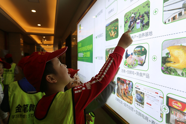 一進產(chǎn)業(yè)園,稚嫩的聲音紛紛響起,“這里面是干什么的呀?”“這里有多大呢?”“這里有個雞的圖像,是養(yǎng)雞的嗎?”