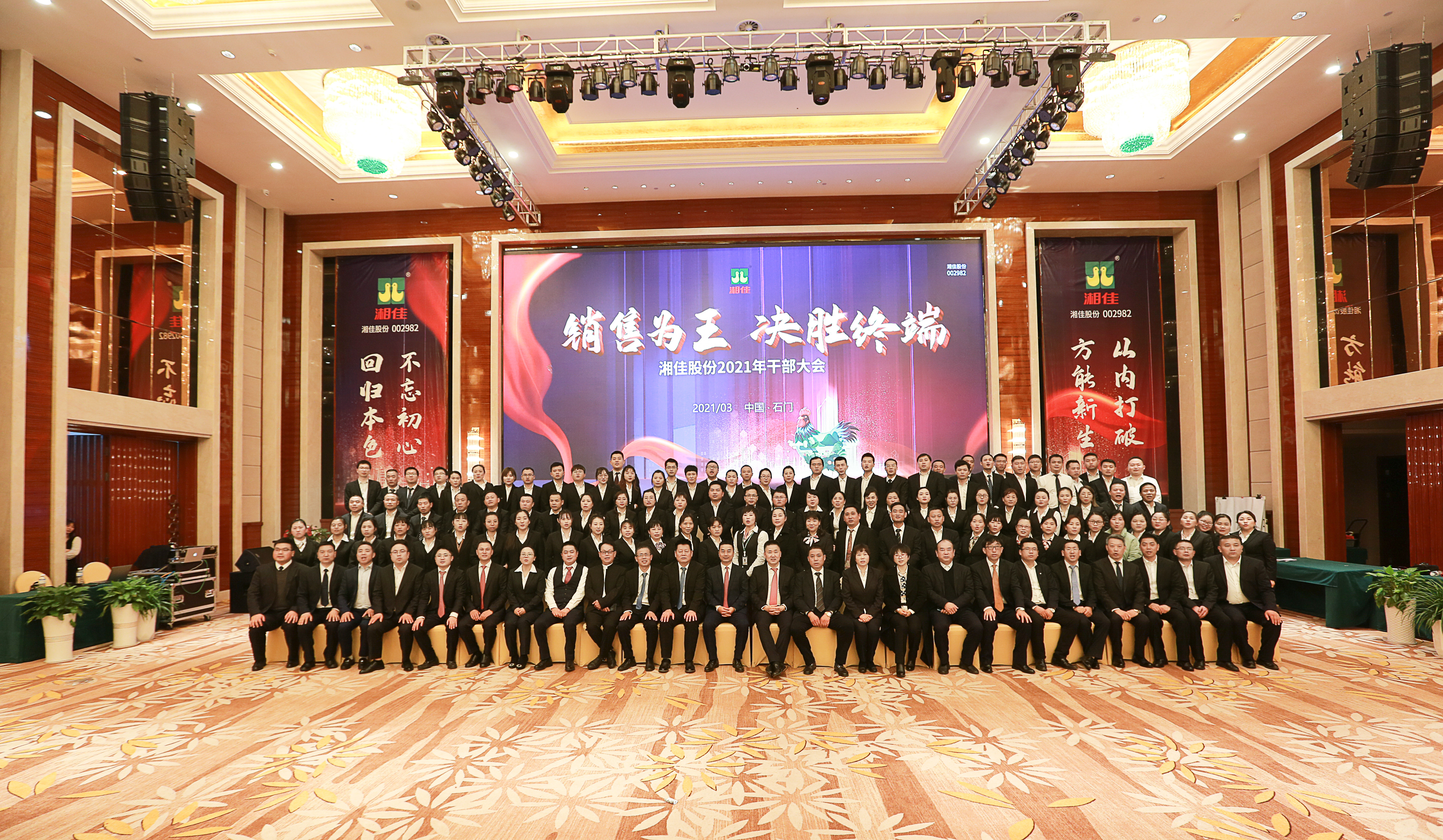 3月12日,2021湘佳股份干部大會在石門青和酒店隆重舉行,來自全國各區(qū)域300多名湘佳精英參加了此次大會。