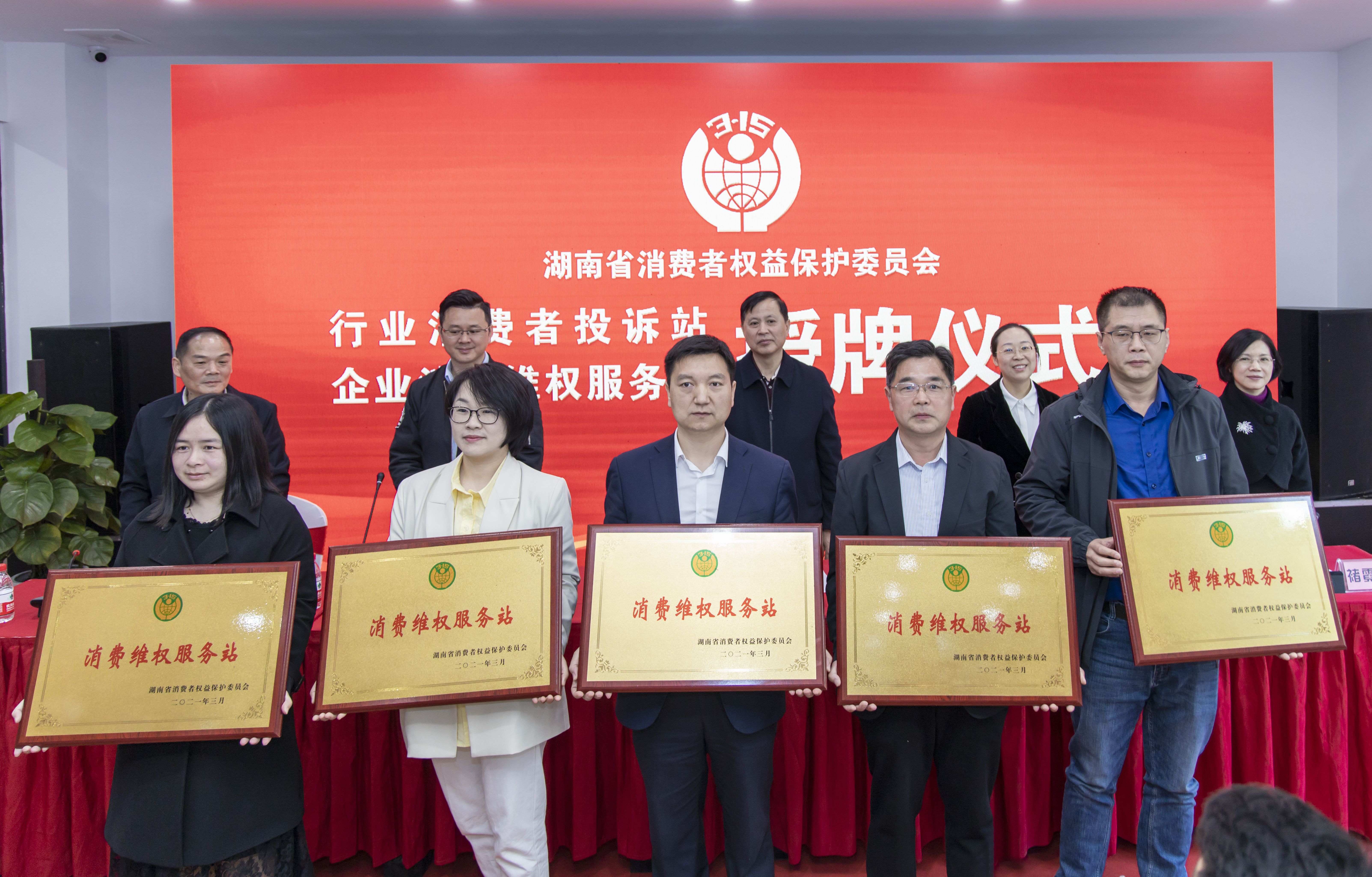 (3月25日,湖南省消保委為湘佳股份等10家企業(yè)頒發(fā)“消費維權服務站”牌匾。)