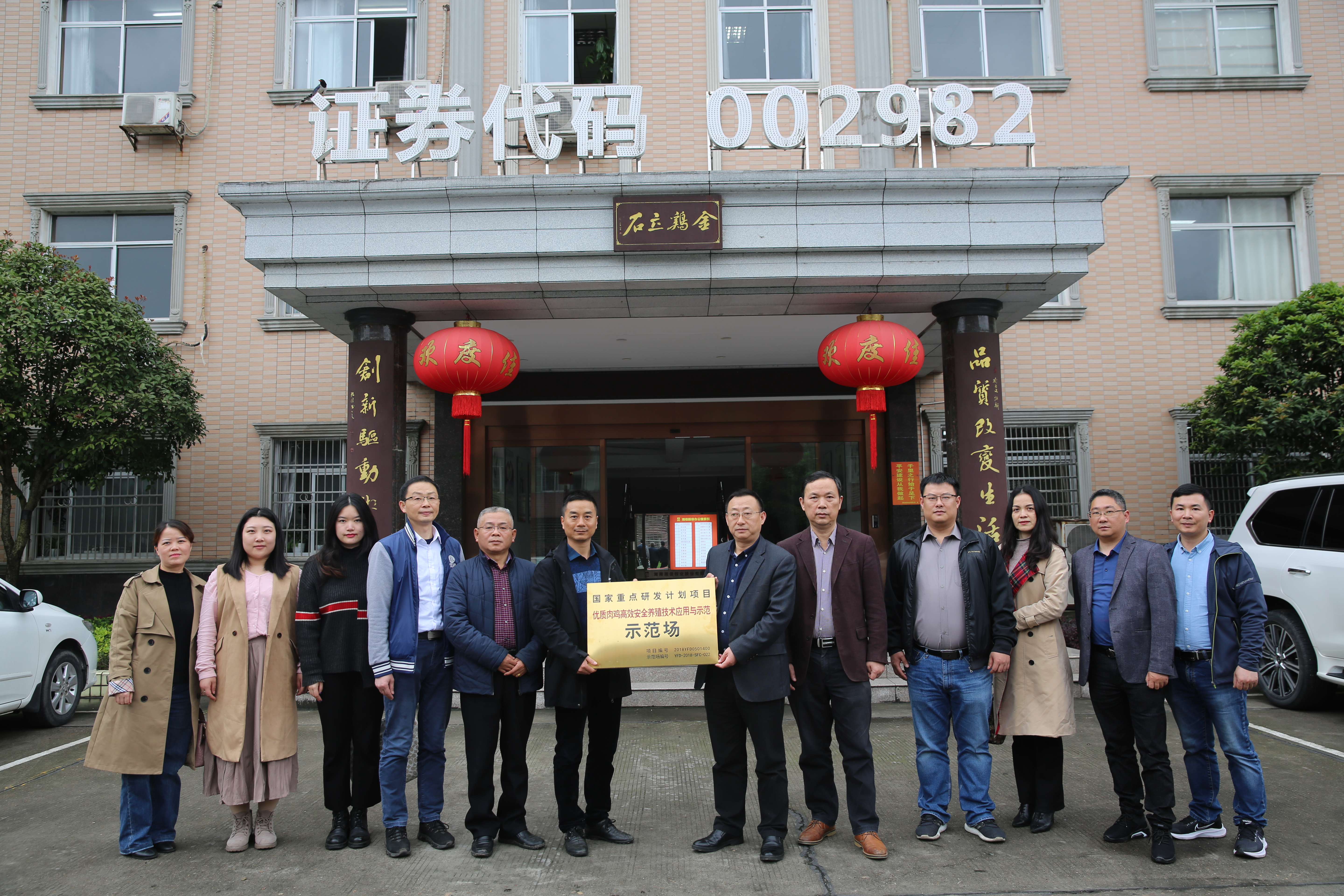 4月21日,“優(yōu)質(zhì)肉雞高效安全養(yǎng)殖技術(shù)應(yīng)用與示范”示范場授牌儀式在湘佳股份總部舉行。湖南農(nóng)業(yè)大學(xué)動(dòng)物科技學(xué)院方熱軍教授與湘佳股份副總裁何業(yè)春等家禽學(xué)專家參加了授牌儀式。