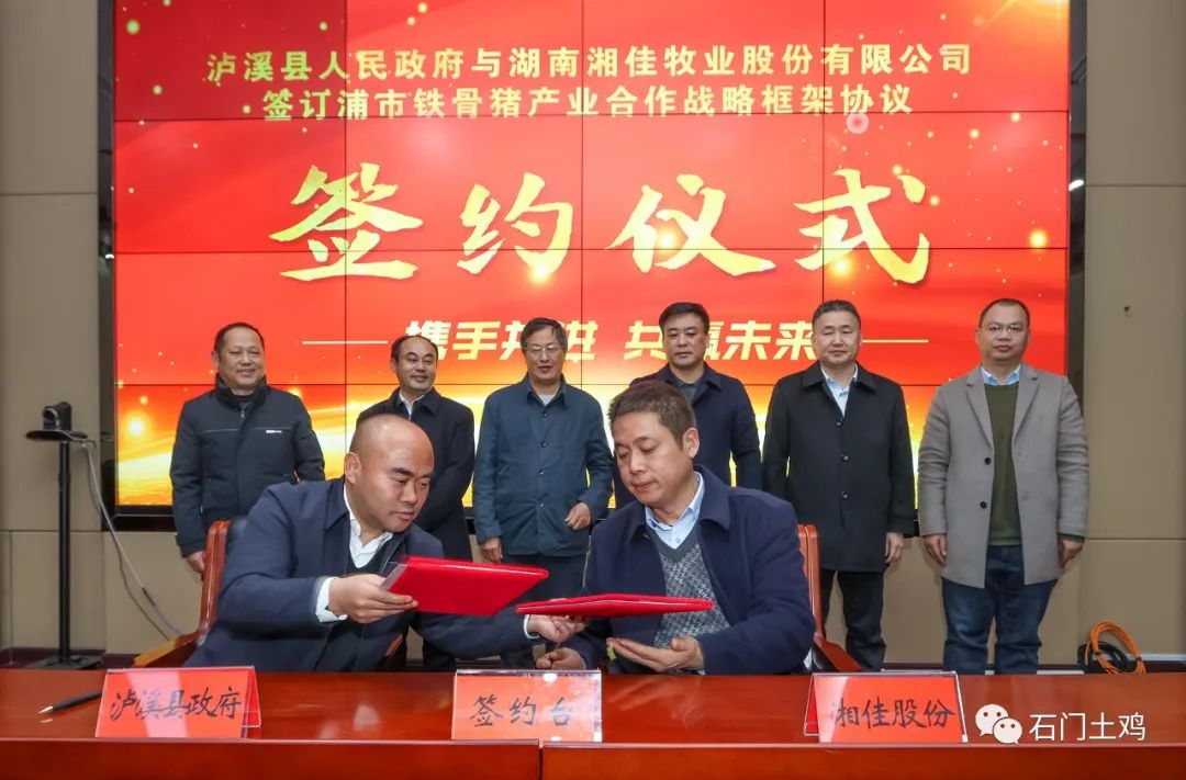 2月8日,湖南湘西自治州瀘溪縣人民政府與湖南湘佳牧業(yè)股份有限公司就做大做強該縣浦市鐵骨豬產(chǎn)業(yè),簽訂合作戰(zhàn)略框架協(xié)議。湖南農(nóng)大印遇龍院士工作團隊、瀘溪縣人民政府、湘佳股份三方將共享盛舉,精誠合作,讓這一養(yǎng)在深山人未識的“黑豬極品”走出湘西。