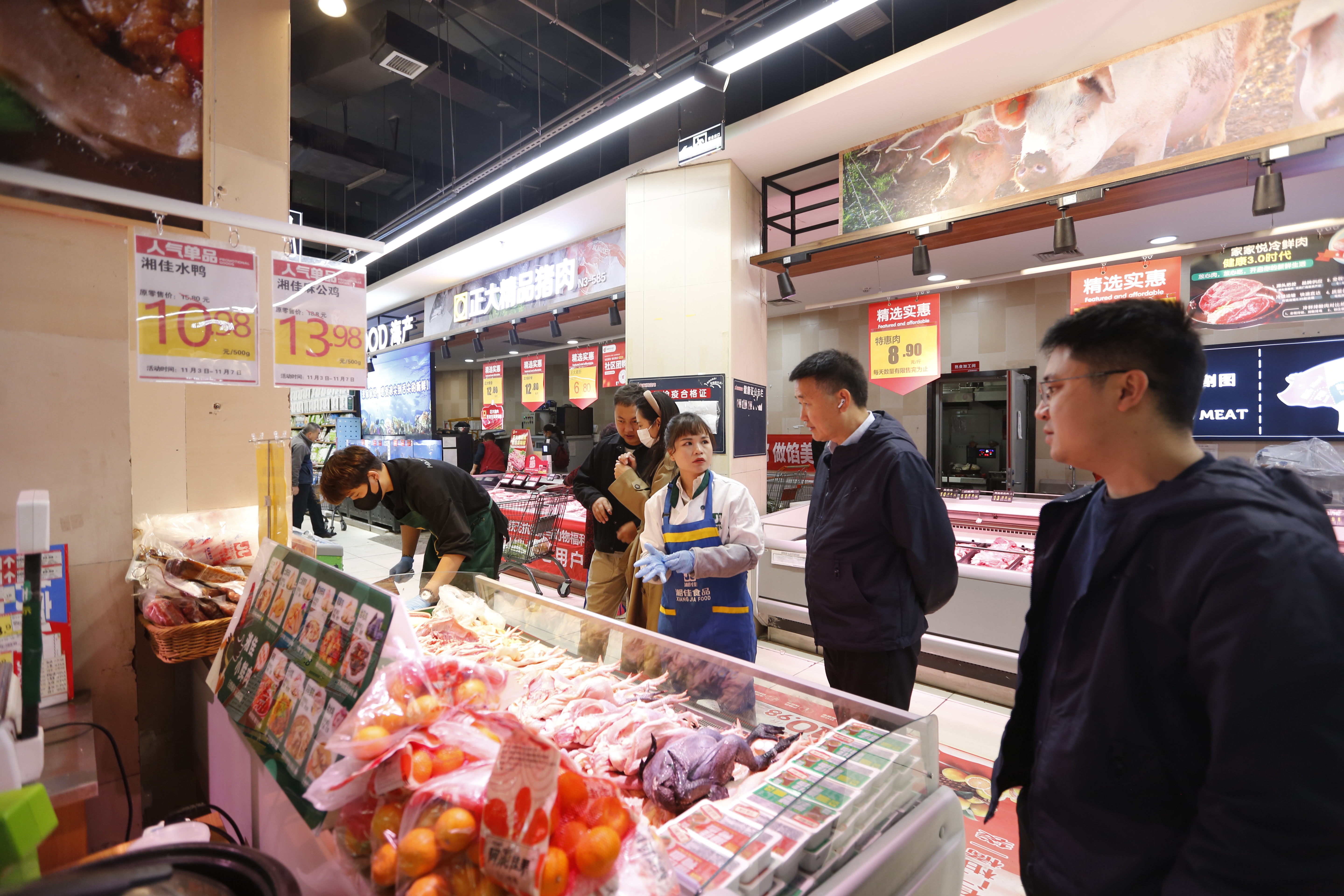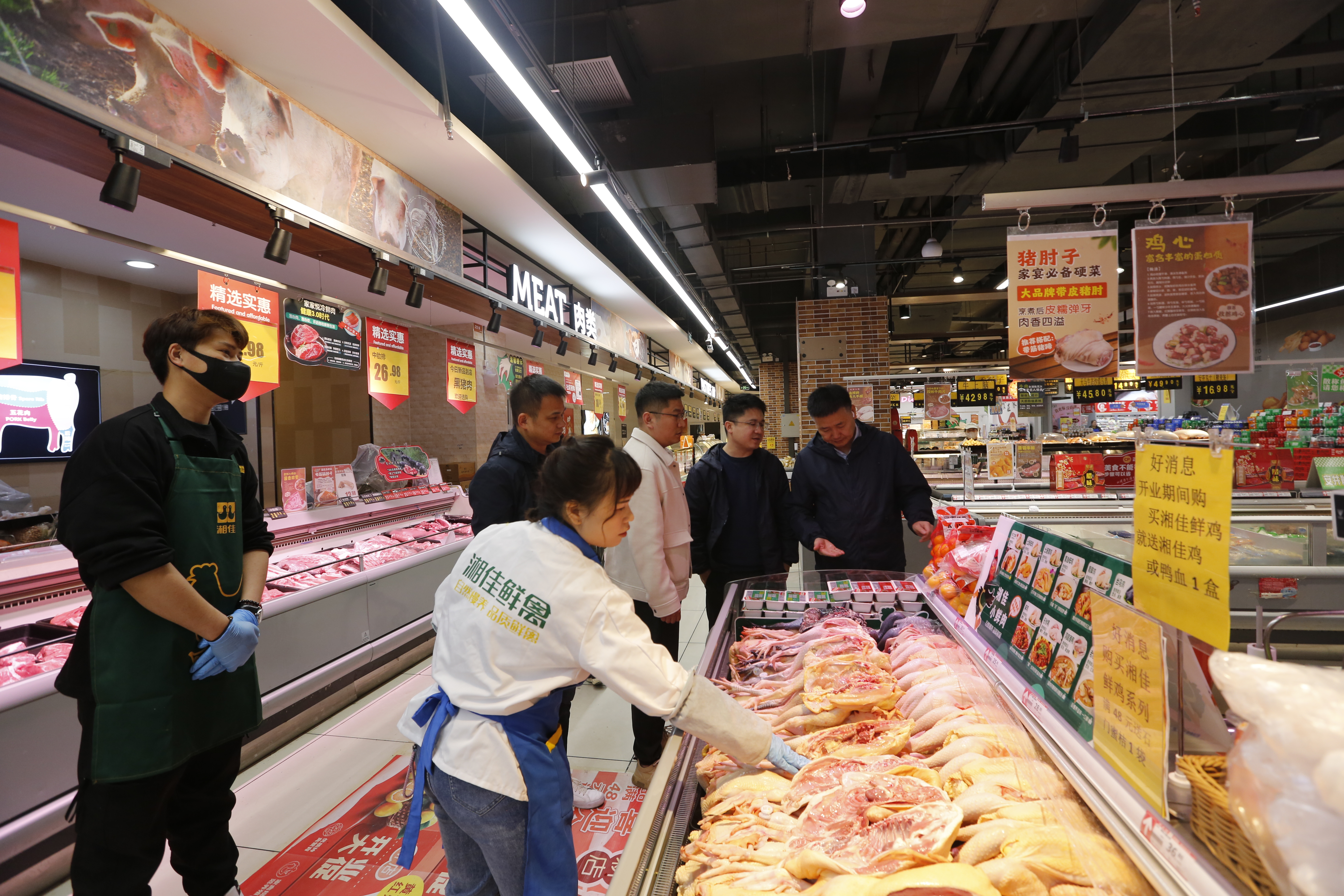 “從超市早上開門開始,就一直有顧客來詢問和購買我們公司的雞肉,第一天就在內(nèi)蒙古這個(gè)新市場搞了一個(gè)開門紅。”工作人員一邊忙著給顧客剁肉,一邊給湘佳股份董事長喻自文和副總裁趙柯程匯報(bào)首日銷售情況。
