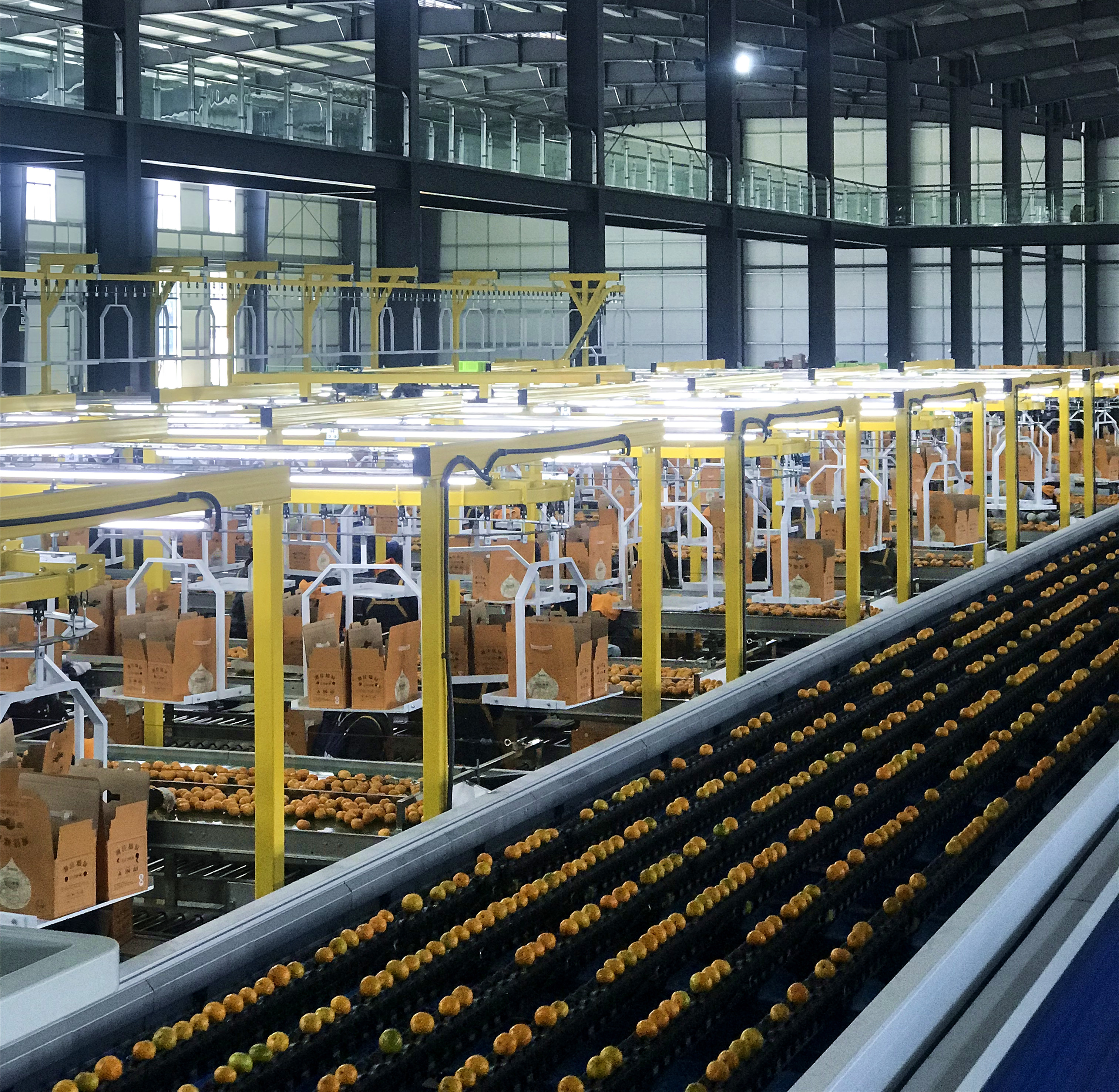 康備科先進的光學(xué)元件、強大的成像處理和高清智能視覺系統(tǒng),能清晰、快速、準(zhǔn)確地識別每顆柑橘的規(guī)格重量和外觀瑕疵,如果銹、蟲斑、太陽斑、新鮮劃傷等,并自動剔除和分級處理,并通過視頻終端,將檢測、優(yōu)選流程呈現(xiàn)在采購商面前,從而自動解決柑橘采后處理面臨的品質(zhì)參差不齊的難題。