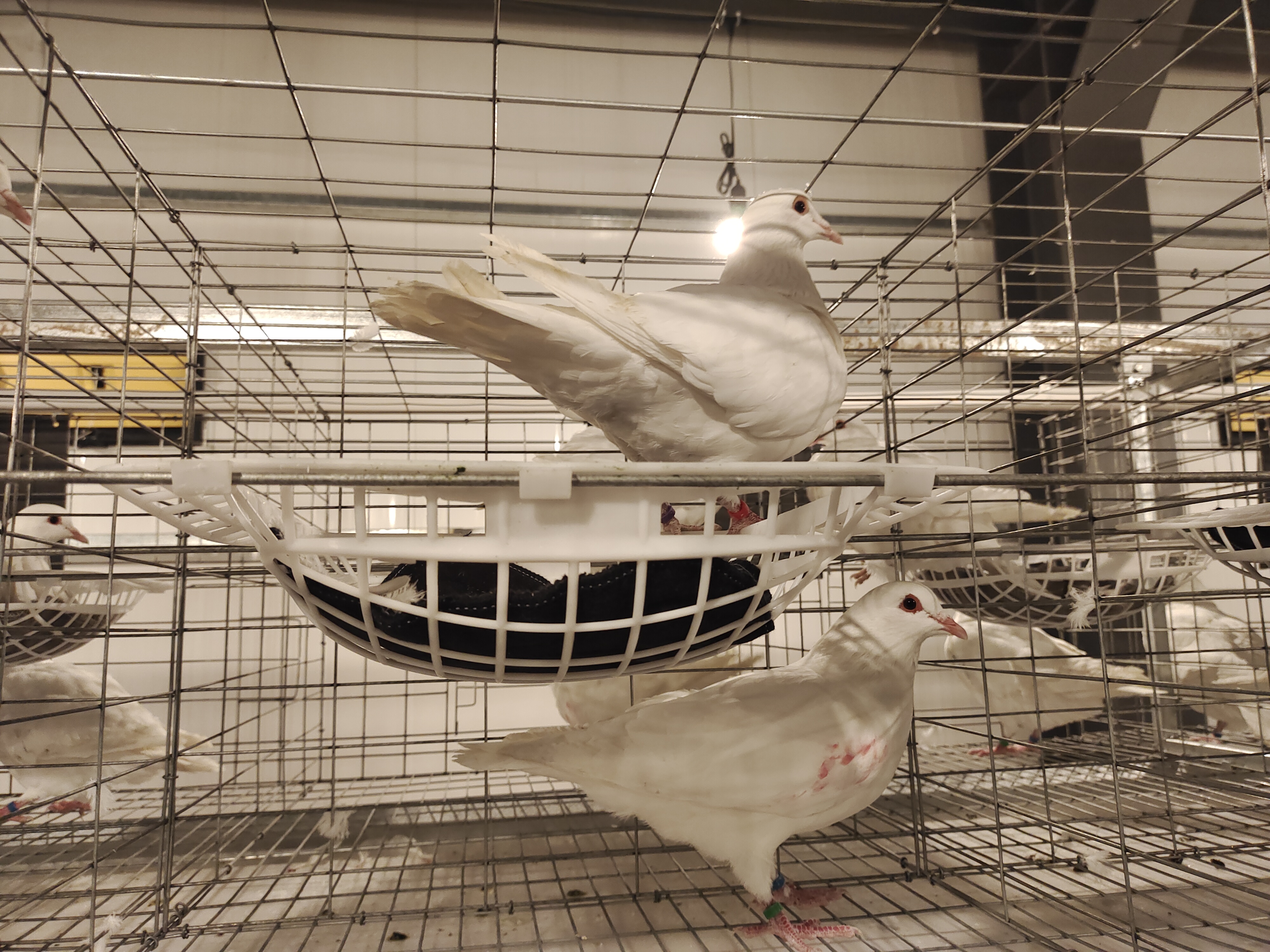 走進(jìn)鴿舍,一排排干凈整齊的鴿籠映入眼簾。每個(gè)鴿籠里都有一個(gè)公鴿和一個(gè)母鴿住在一起,鴿籠里有個(gè)小窩,窩里有鴿蛋,有剛孵化的小鴿子?!胺蚱迋z”時(shí)而追逐打鬧,時(shí)而喝水吃食,時(shí)而咕咕咕“唱”個(gè)不停,場(chǎng)面十分熱鬧壯觀,這就是湘佳股份黃木崗種鴿繁育基地。