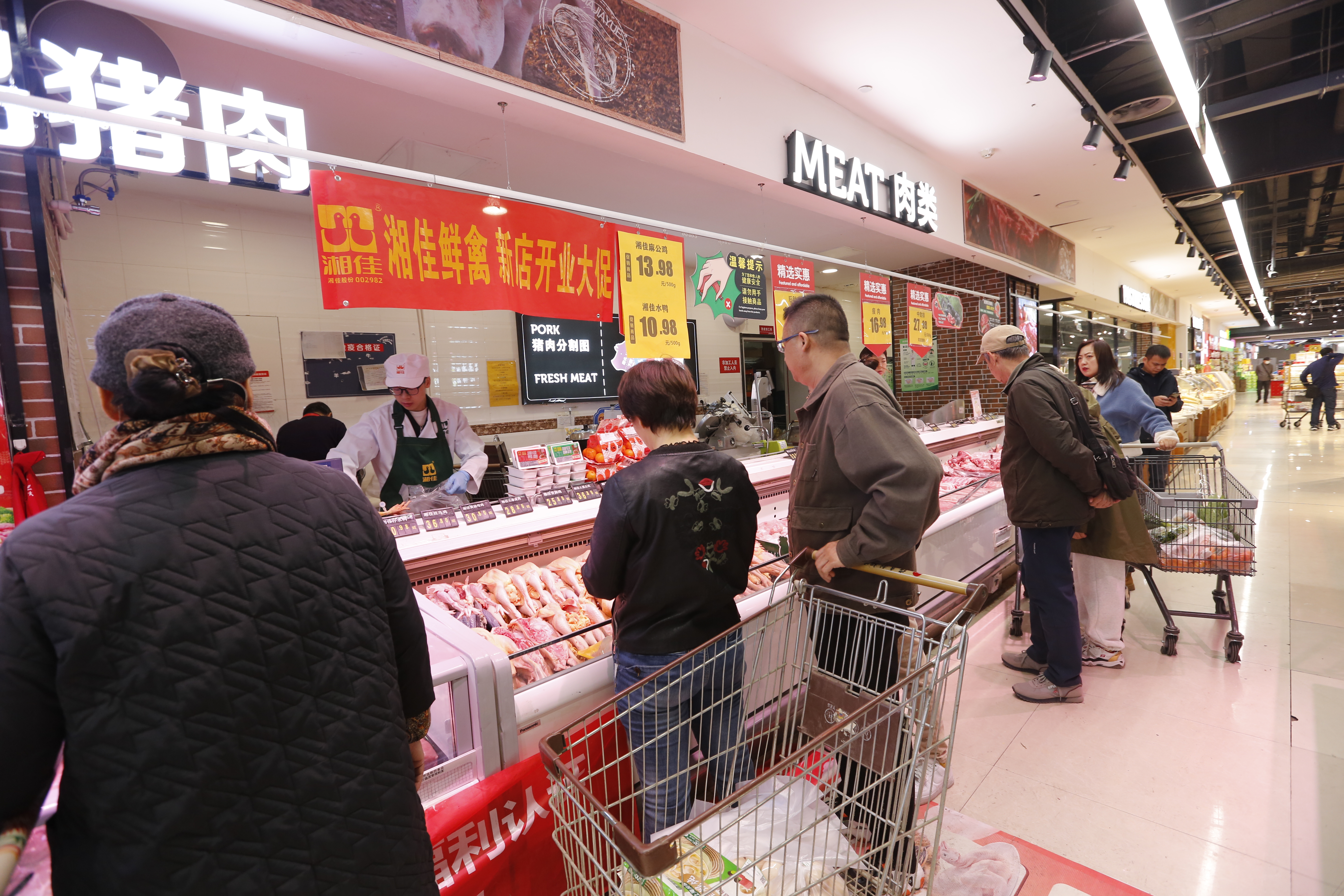 “從超市早上開門開始,就一直有顧客來詢問和購買我們公司的雞肉,第一天就在內(nèi)蒙古這個(gè)新市場(chǎng)搞了一個(gè)開門紅。”工作人員一邊忙著給顧客剁肉,一邊給湘佳股份董事長(zhǎng)喻自文和副總裁趙柯程匯報(bào)首日銷售情況。